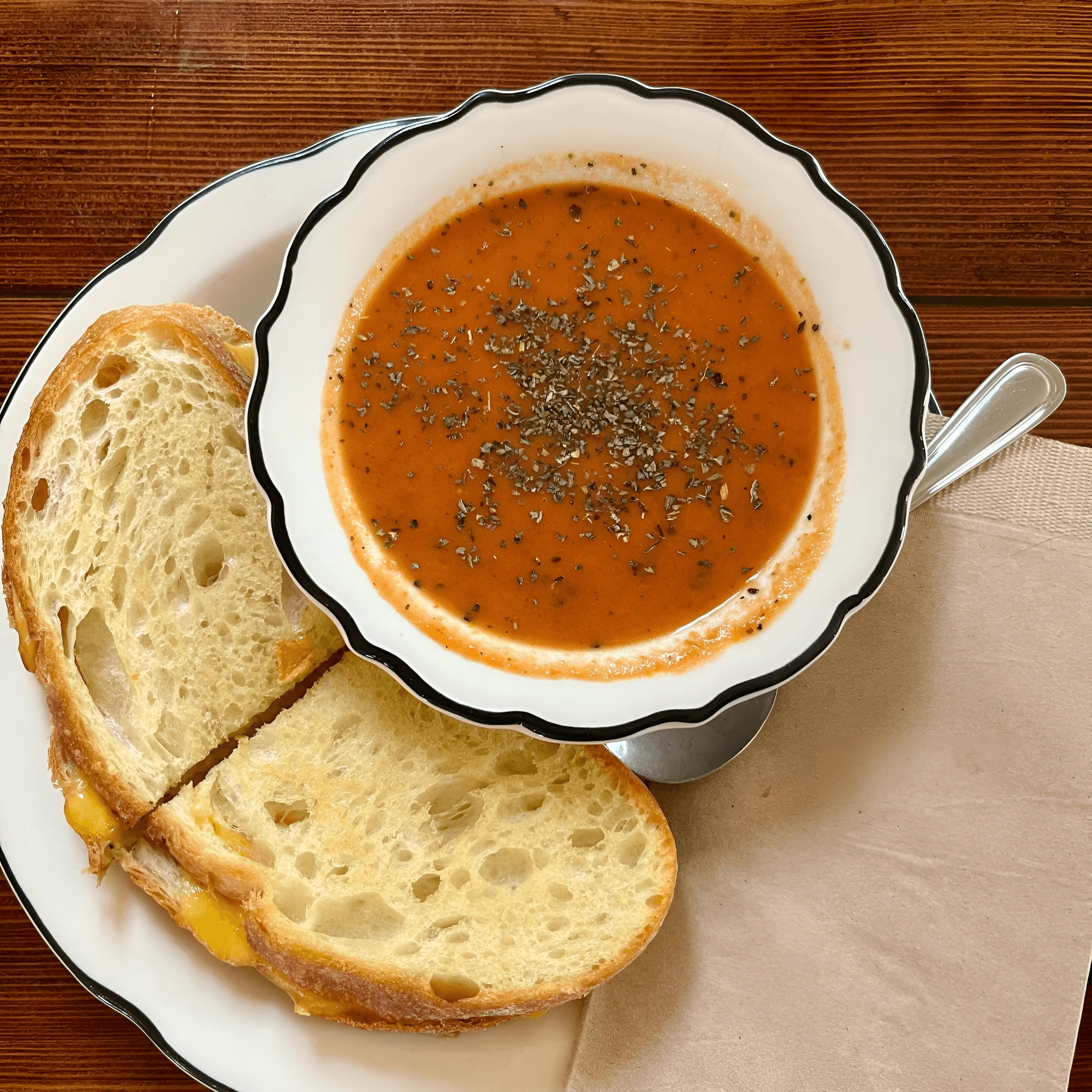 I stopped in for a casual lunch and loved the experience! You order at the counter, and they bring your food right to your table. The cozy, calm space is beautifully decorated with a mix of tables and comfy chairs. My grilled cheese with bacon and tomato soup were delicious, and the oatmeal latte was absolutely perfect.